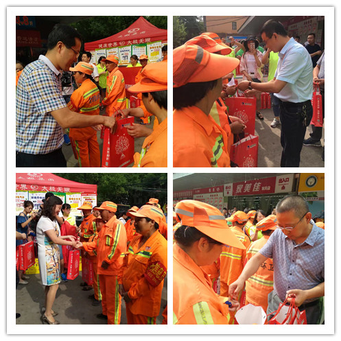有这样一群人,他们用勤劳的双手,为我们的工作和学习增添了舒适和愉悦;他们冒雨迎风去,披星戴月归;晴天一身灰,雨天一身泥,恪守了"脏了我一人,洁净千万家"的信念,在平淡的工作中,以实实在在的行动担当起一份令人尊敬的责任。他们就是城市的美容师—广大环卫工作者! 为了表达对环卫工人的关爱之情,2017年6月20日,由中共华体会(中国)党总支和陕西辰济大药房有限公司、宝鸡市金台园林环卫管理处联合承办“关爱环卫工辰济惠万家”公益活动;陕西中远医药有限公司、陕西博鸿医药有限公司、修正药业集团营销有限公司斯达舒事业部、仁和中方医药股份有限公司等业务单位协办,活动在辰济大药房西关店隆重举行。 活动开始后,由公司党总支副书记、总经理助理王静,辰济大药房总经理刘明、金台园林环卫管理处等主办方领导为此次活动致辞。王书记在讲话中代表华体会(中国)全体员工向全市环卫工人朋友表达真挚的感谢!感谢她们长年发扬“宁愿一人脏、换来万人洁、无私做奉献”的优良作风,美化、绿化、净化了我们的城市。借此机会公司为大家准备了抗酷暑的物品,希望能尽我们绵薄之力,在这个夏天给我们最美丽的人带来一些凉意!同时,王书记也代表公司全体员工承诺:不乱丢垃圾,爱护环境,从小事做起,从自己做起,为宝鸡的市容美丽奉献自己的一份力量! 随后,各位领导以及志愿者们为现场环卫工人分发了礼品。环卫工人们接过一份份悉心准备的礼物,开心不已,明朗的笑容映在脸上,感谢之语不绝于耳“真心感谢辰济药业送的礼品,让我们在这个炎热的夏天,能有效地防暑降温”。 宝鸡电视台也对本次活动全程关注,并对辰济大药房刘明总经理进行了采访,刘总表示:紫光辰济多年来一直致力于健康与公益事业发展,秉承着“辰光泽惠,德润天下,济世康民,关爱生命”的企业理念。环卫工人是我们城市的美容师,不论春夏秋冬,严寒酷暑,都坚定的在自己的岗位上为我们这座美丽的城市增光添彩。希望通过此次活动,能让更多的人来关注到环卫工人,能让大家对于城市环境有一个好的保护,能让我们的环卫工人得到更多的关爱。 在本次活动中,华体会(中国)及陕西辰济大药房有限公司为环卫工人总共发出了近千份,总价值80000元的防暑降温礼品。公司将会一直秉承清华大学“厚德载物”理念,为宝鸡地方经济的发展尽自己的微薄之力,今后将会一直积极致力社会公益事业的发展。